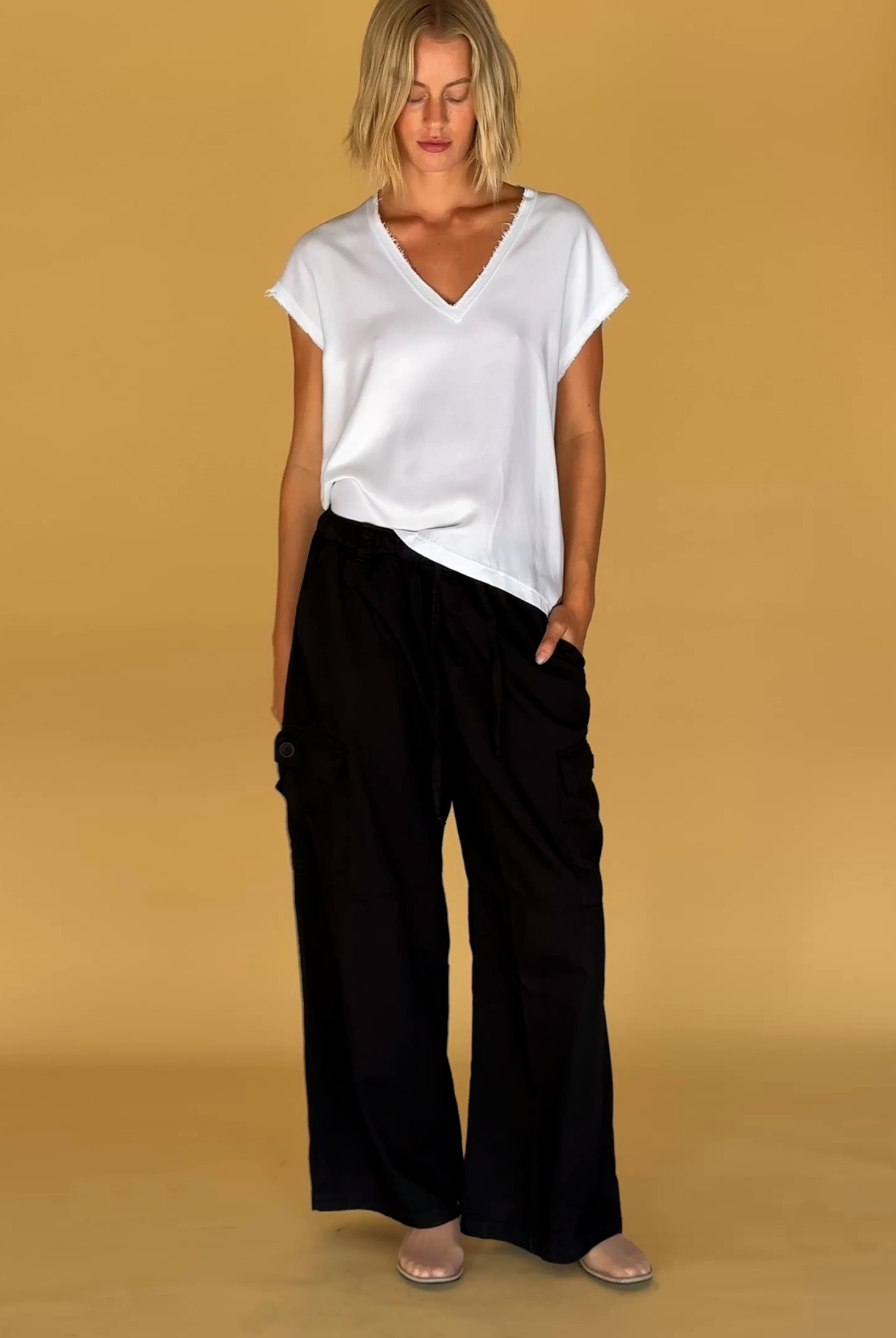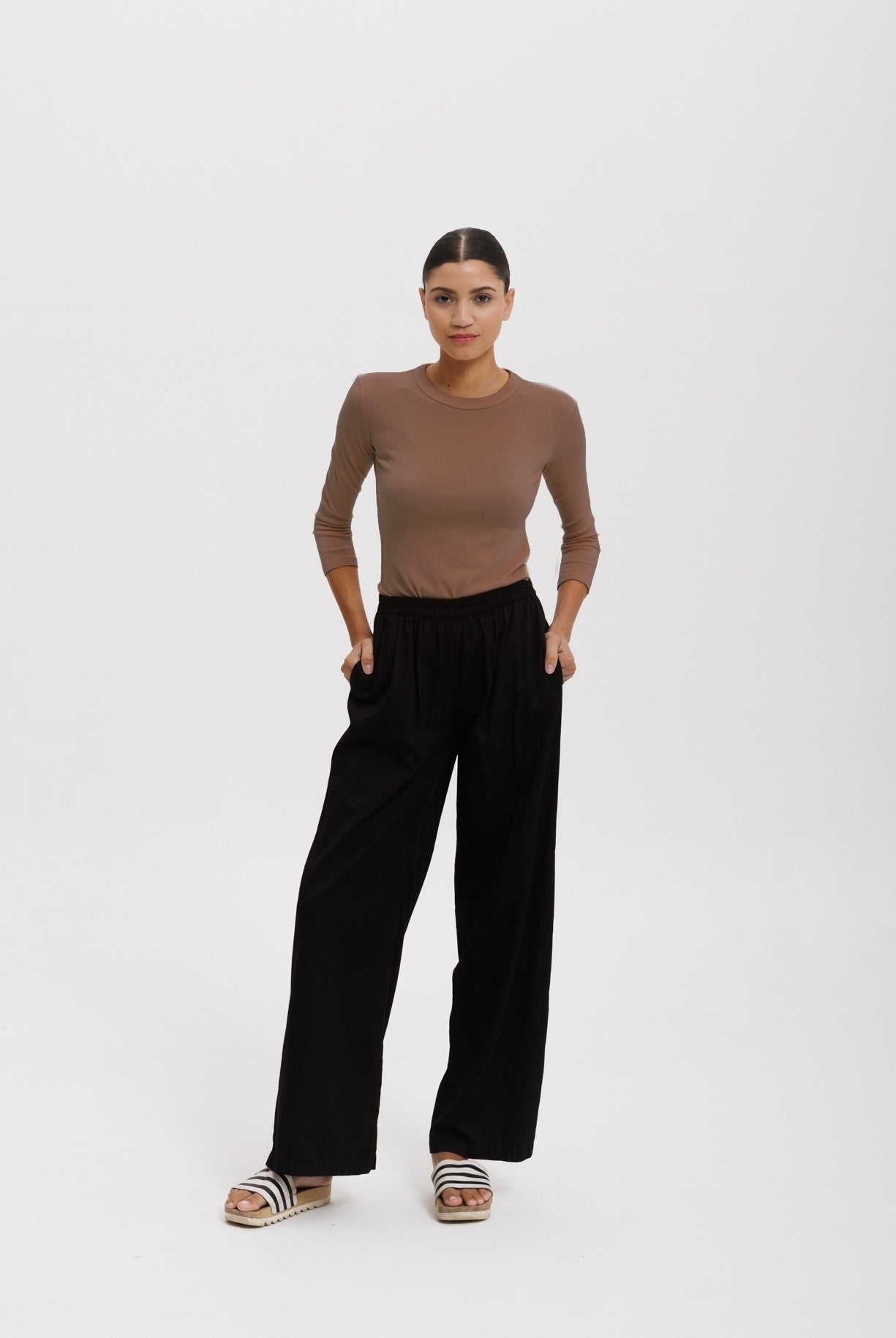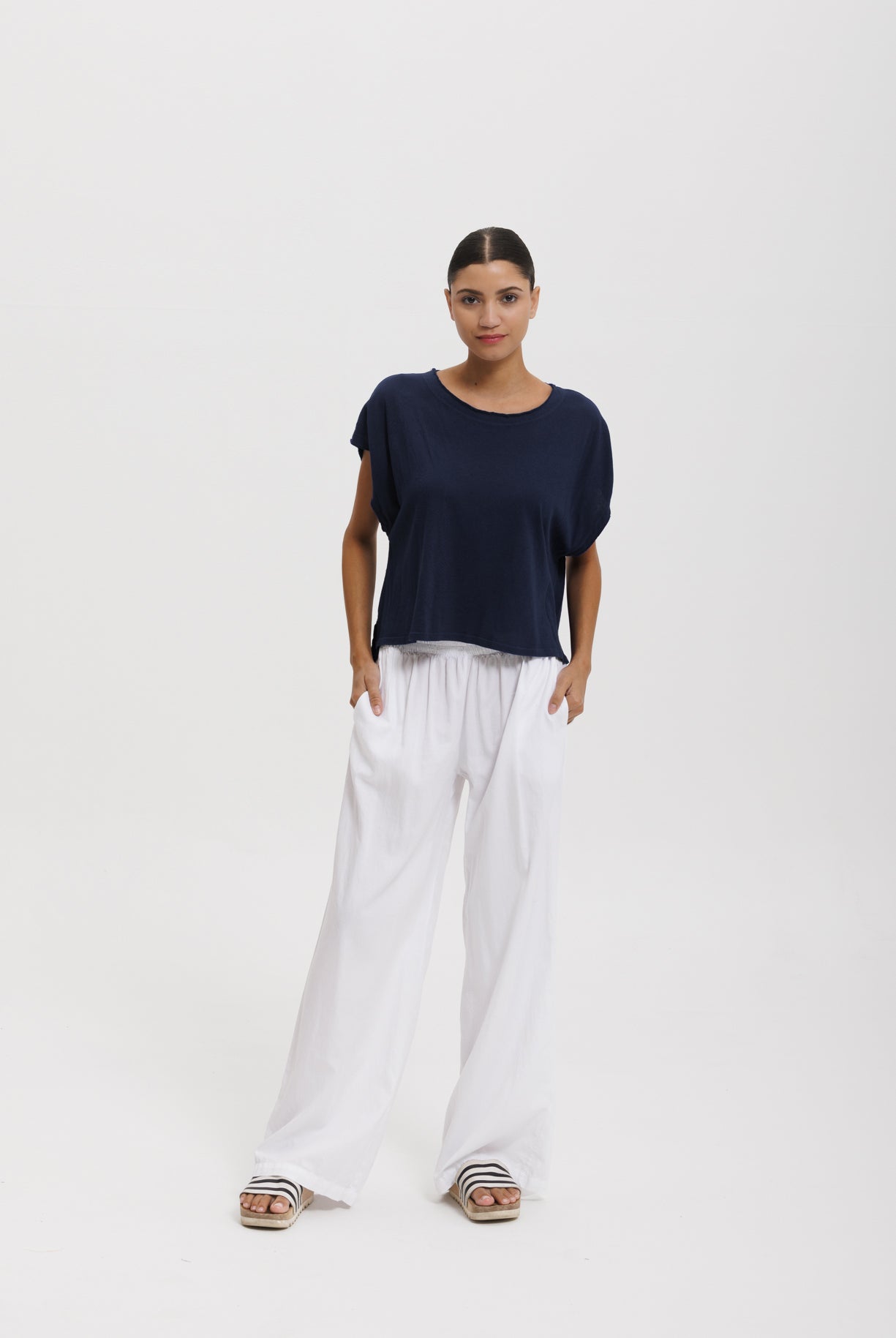 Slightly oversized, straight-leg cut and slouchy in fit, this new pant silhouette has genuine style and is versatile with sneakers, flats, barefoot or heals. Leave them low on your hips or fitted high at your waist. Available in two fabrics; CALI's natural, breathable cupro and our signature 100% cotton poplin.
