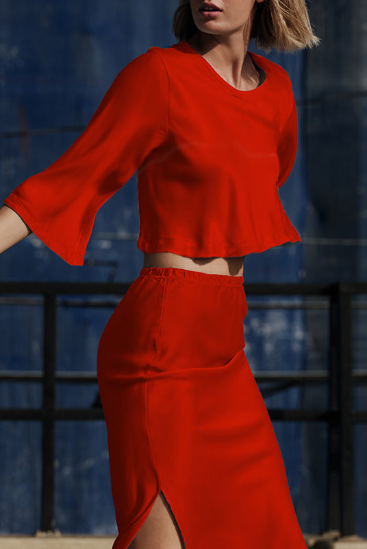 The Carmen Crop is a fitted, long sleeved cropped shirt with classic cuffs made from an ultra soft and satin like 100% cotton poplina fabric.