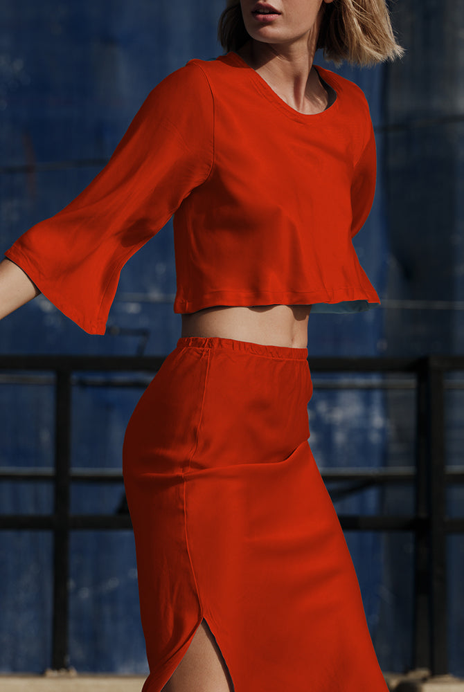 The Carmen Crop is a fitted, long sleeved cropped shirt with classic cuffs made from an ultra soft and satin like 100% cotton poplina fabric.