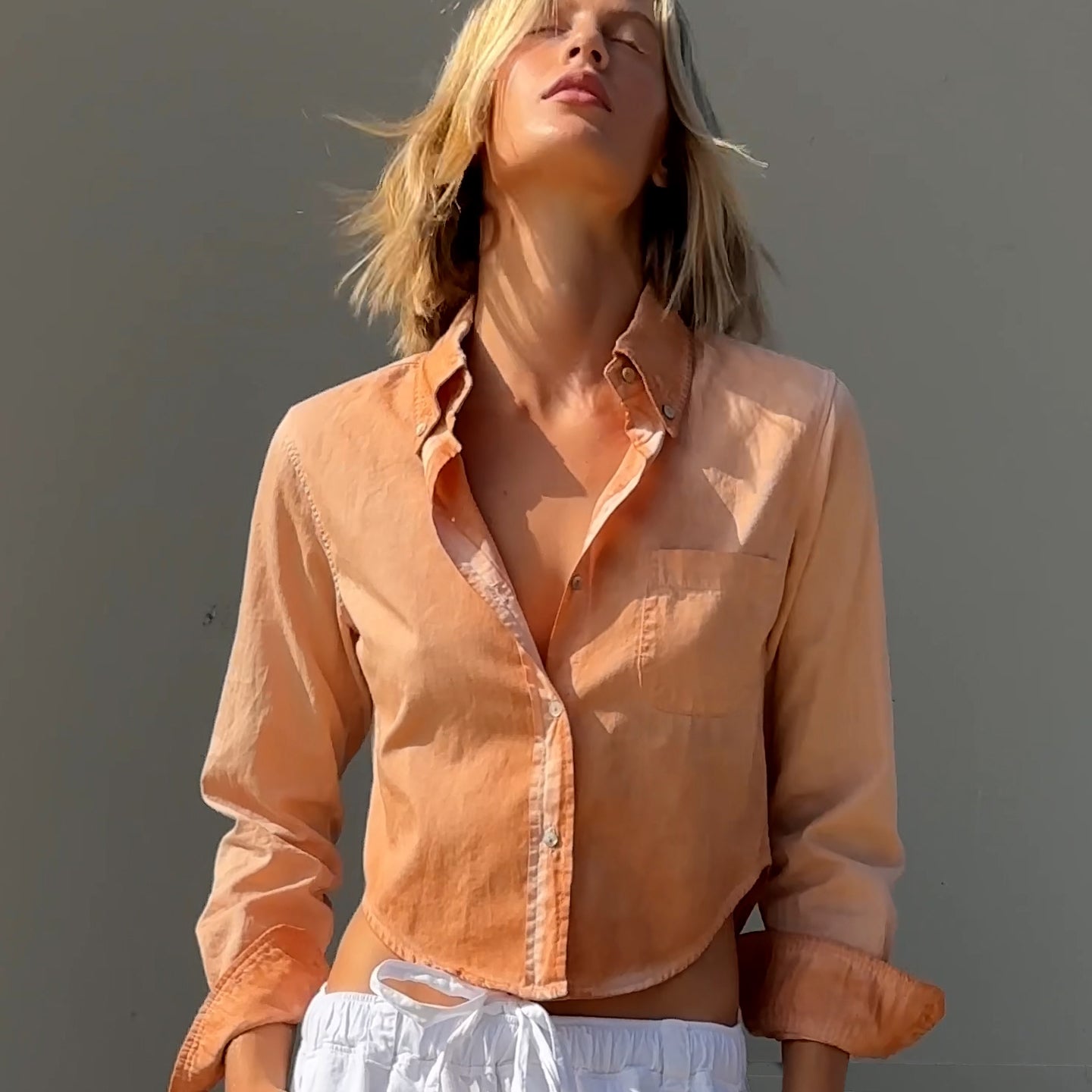The Carmen Crop is a fitted, long sleeved cropped shirt with classic cuffs made from an ultra soft and satin like 100% cotton poplina fabric.