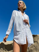 The Lido Shirt Dress is perfect for lounging by the pool or at the beach, heading to brunch, or accentuating those legs on a night out. She loves to be belted or worn as a cover up or oversized shirt.