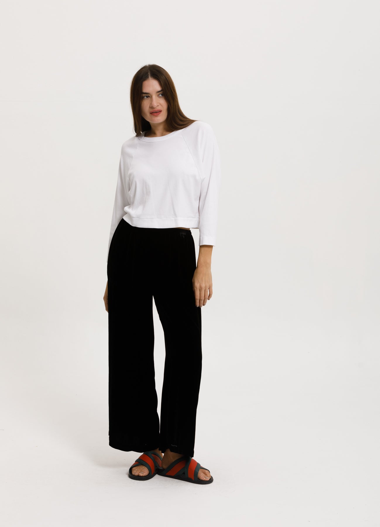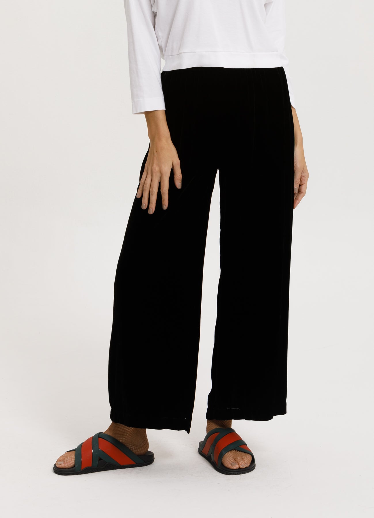 Similar to the Tyler pant but slightly higher at the inseam, palazzo style.