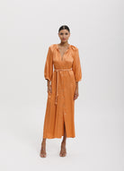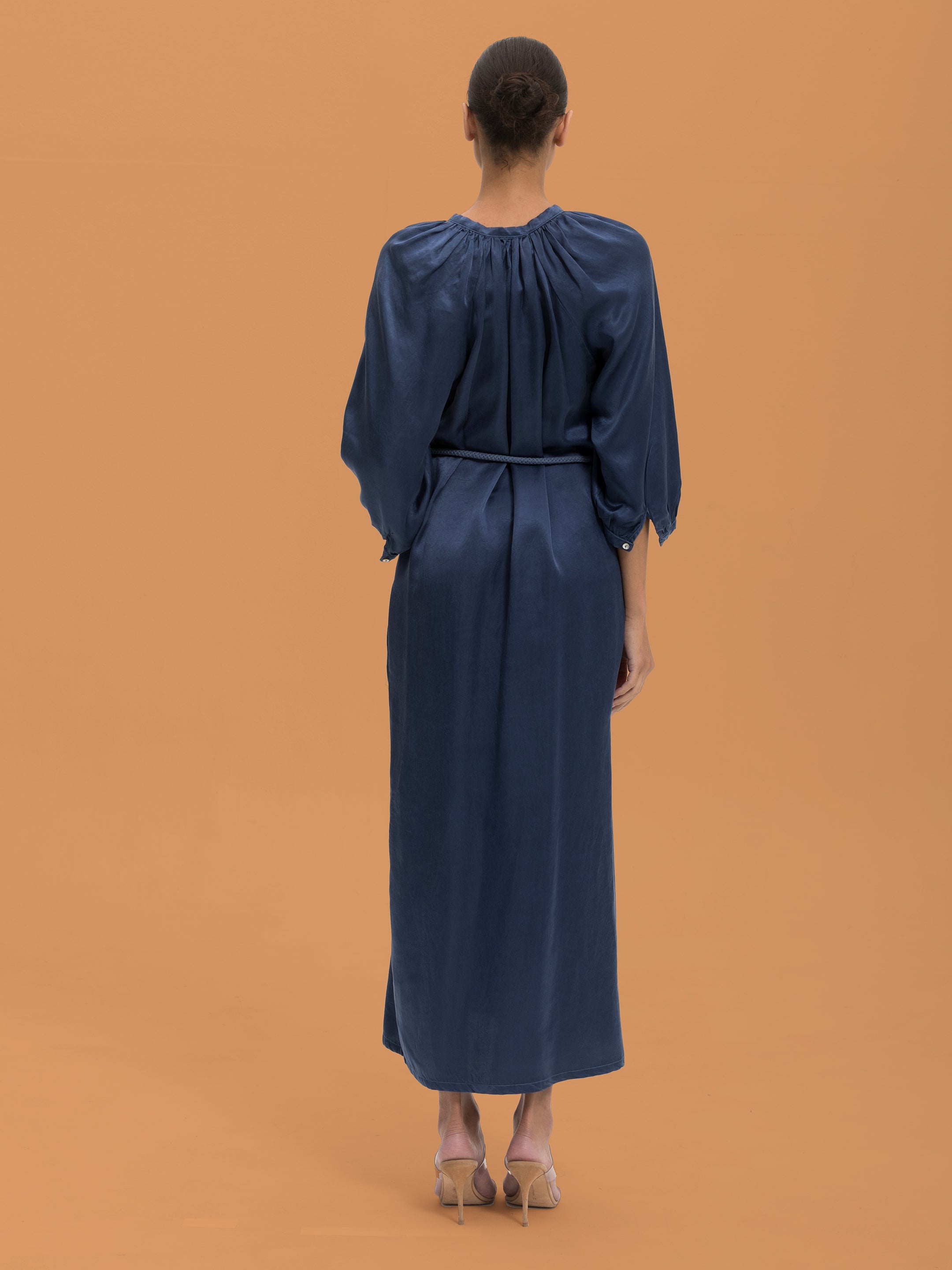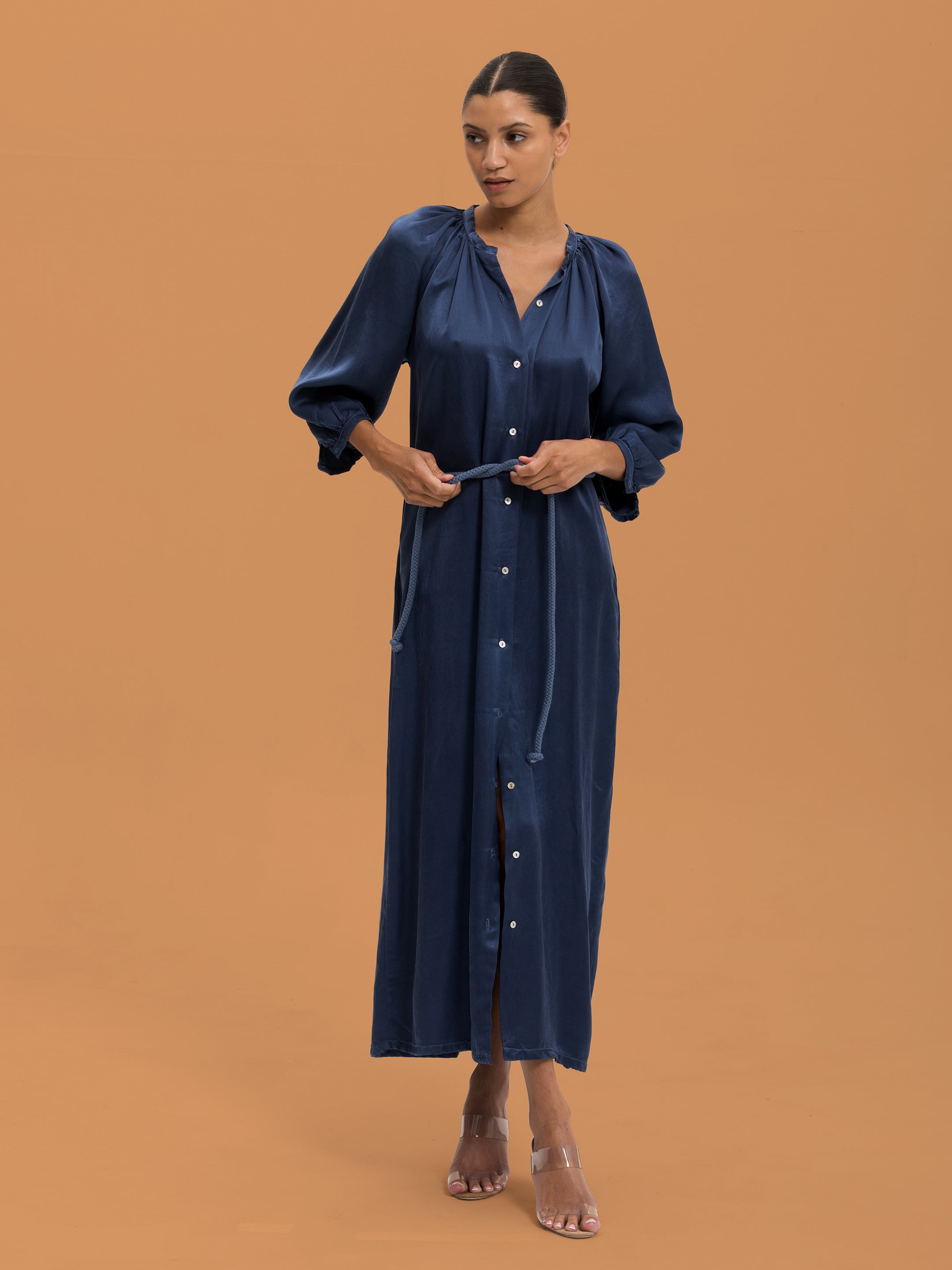 This Coco Dress is a 3/4 length sleeve button down maxi dress, has a feminine billow sleeve and buttons down the bodice giving a sexy silhouette, but with graceful movement designed for comfort.