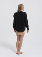 The ACE SHIRT is a classic that will never go out of style. A collarless shirt that features just the right amount of shirring at the collarbone, single front pocket and natural shell buttons. Constructed in 100% laundered cotton.