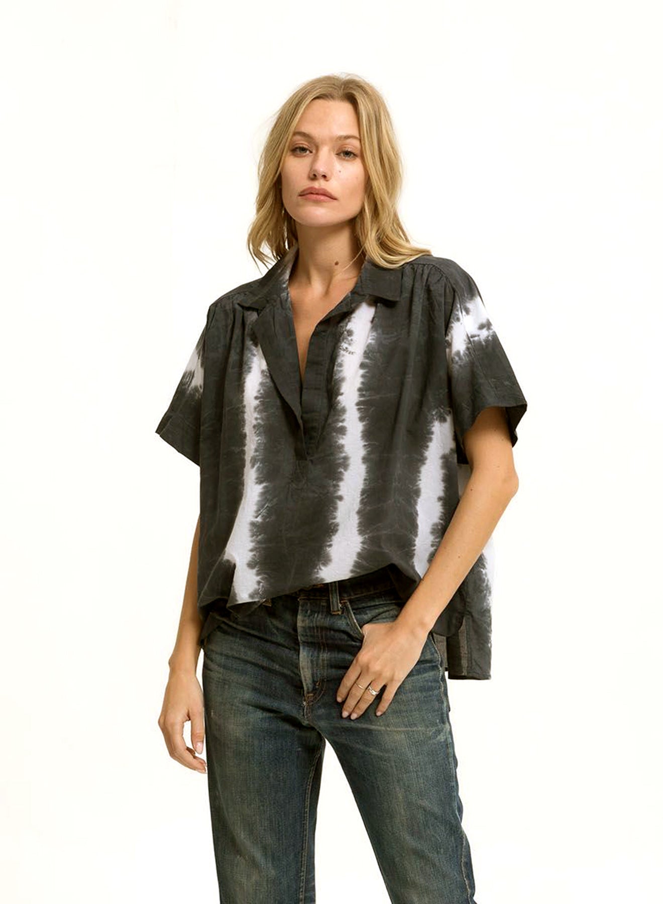 Our #1 best seller, the Motley top is as easy to wear as a classic tee. This relaxed style features a slightly dropped sleeve, placket and collar. Constructed in 100% cotton, made start to finish in Los Angeles, California.