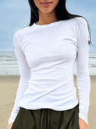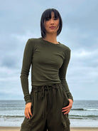 Our Cali Long Sleeve Crew Neck Tee is perfect for everyday-wear and/or layering. A fitted and slouchy long sleeve with a little extra length at the wrist that can be scrunched or rolled up.