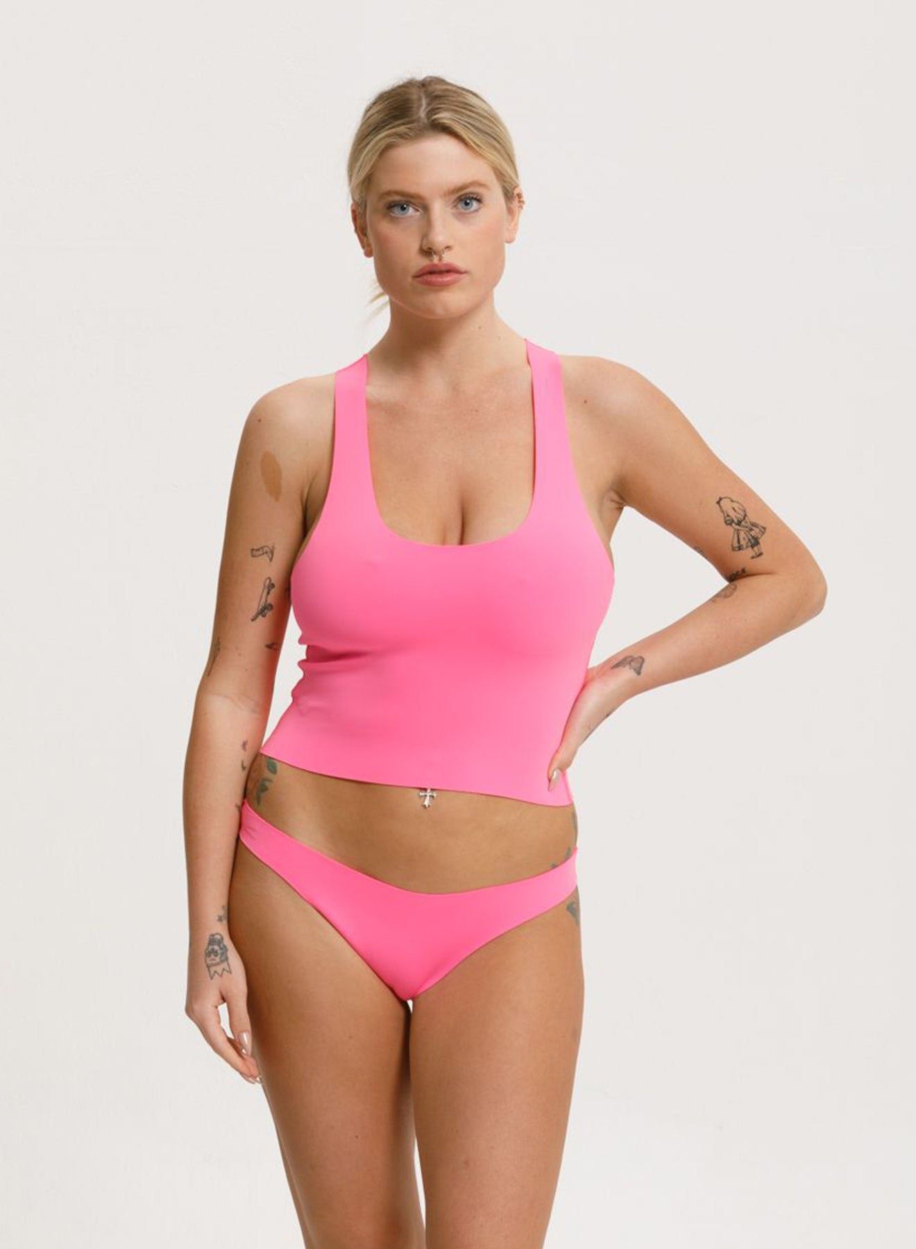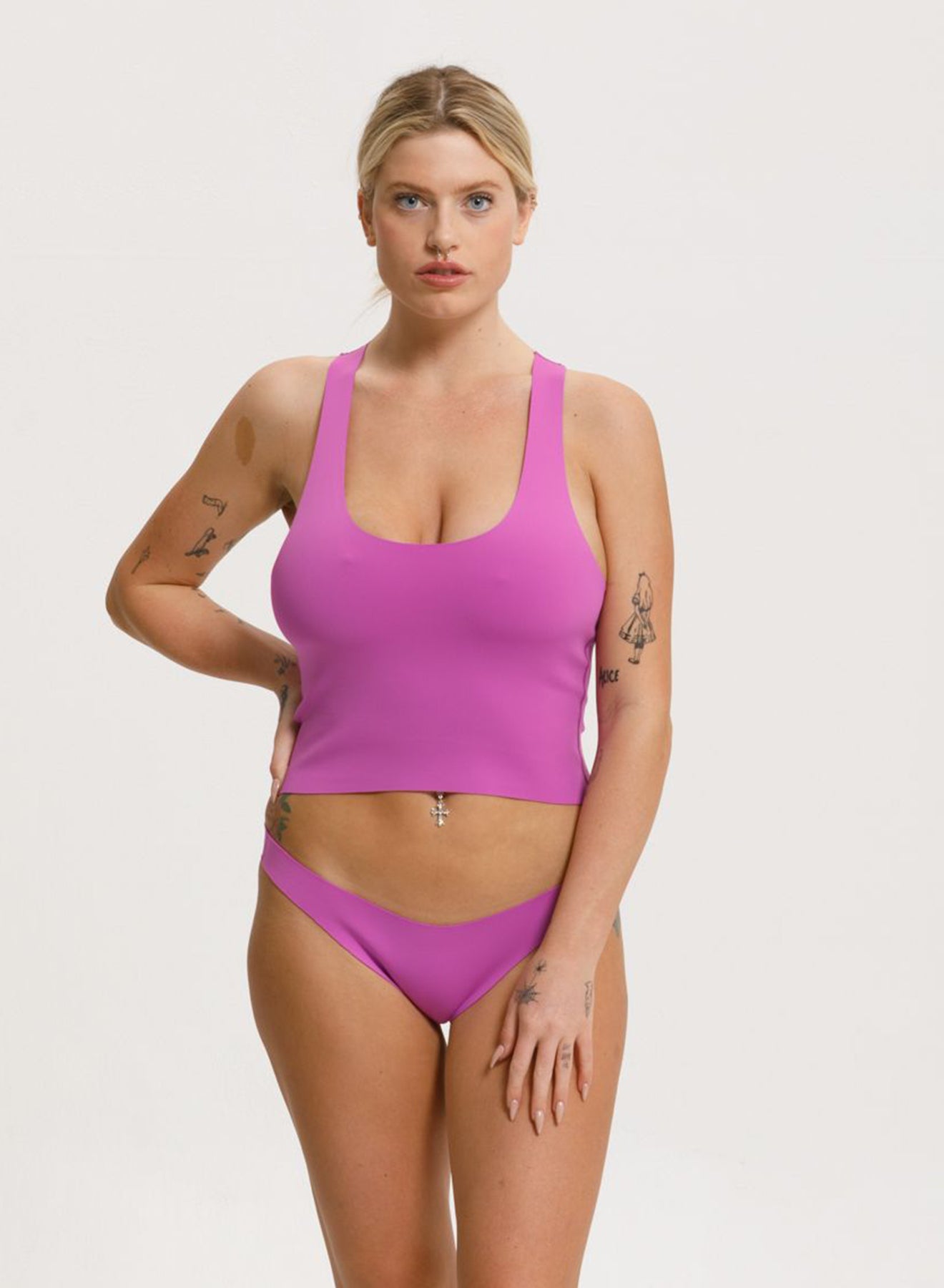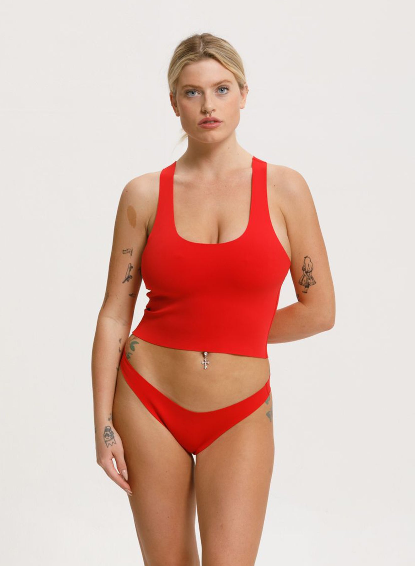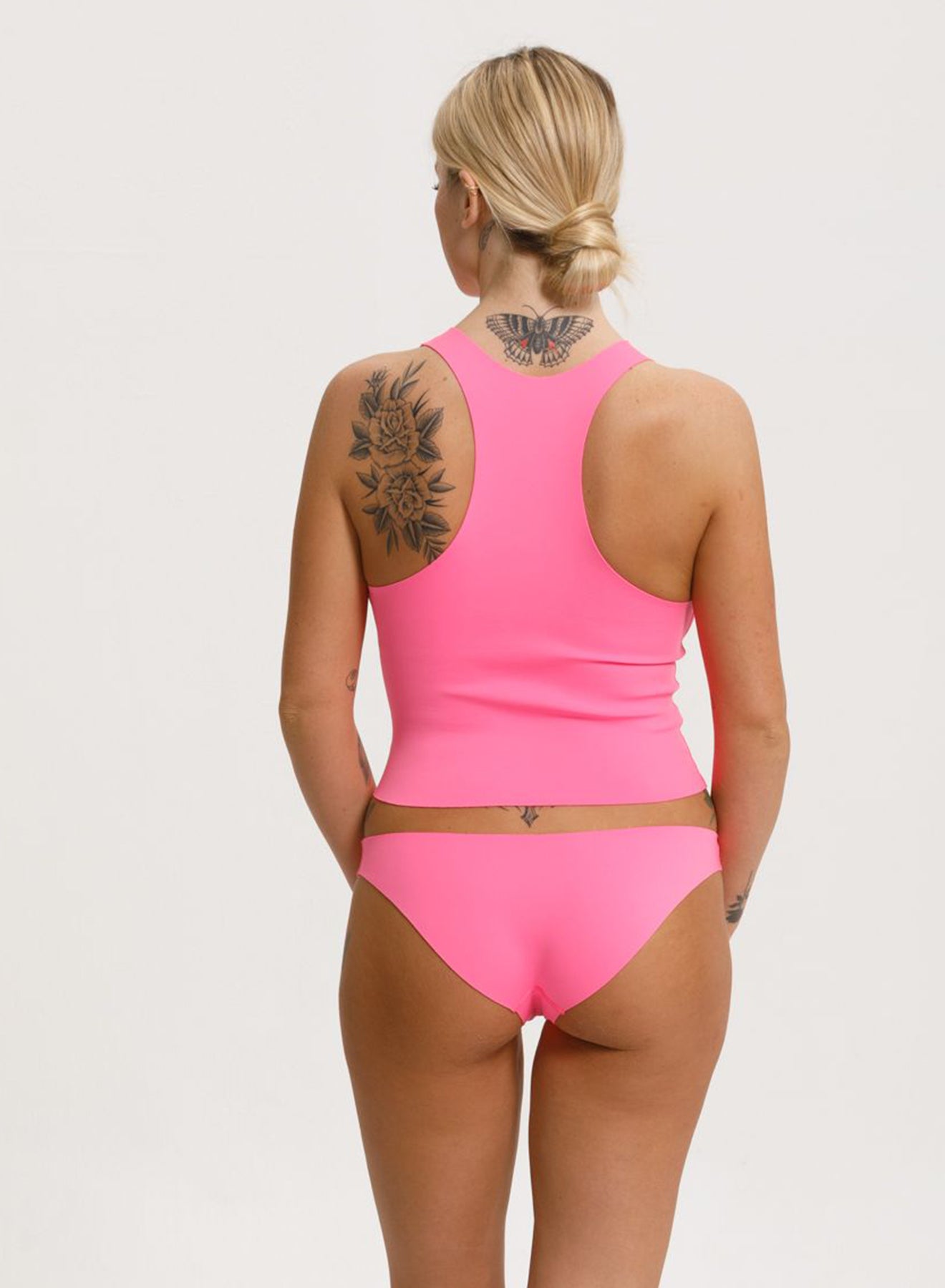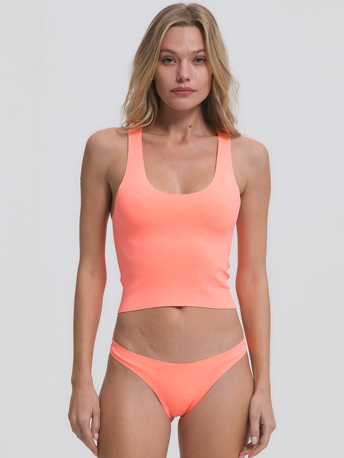 The Racer Back Top, modeled after a sports bra, provides good support and an elegant style that works as well on the beach as off. It pairs well with any of our bottoms but we particularly love it with our Classic Bottom. It's part of our neoprene swimwear collection that uniquely form fits to the body without digging in. It is colorful and bold, yet timeless and classic and creates a second skin when wet and molds to your body in all the right places.